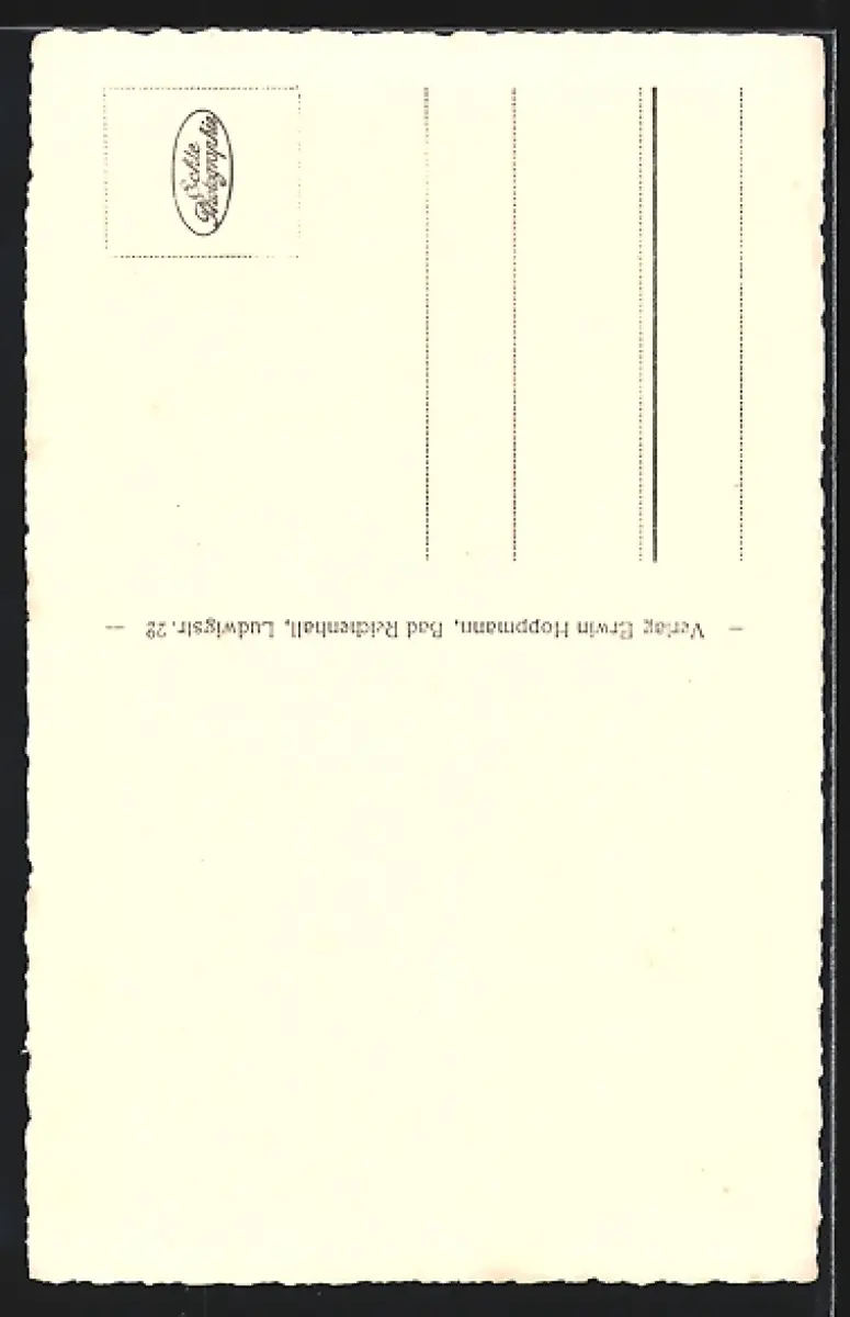 Personenbezogene Daten auf der Rückseite der Karte wurden durch blauen Textmarker unkenntlich gemacht. Die blauen Stellen sind auf die Vorderseite durchgeweicht und wirken sich negativ auf das Postkartenfoto aus