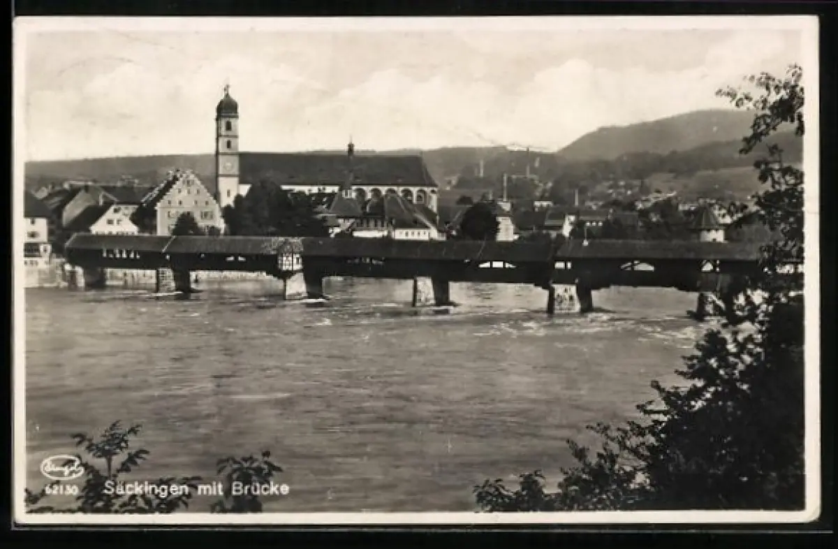 AK Bad Säckingen, Holzbrücke, Kirche, Rhein