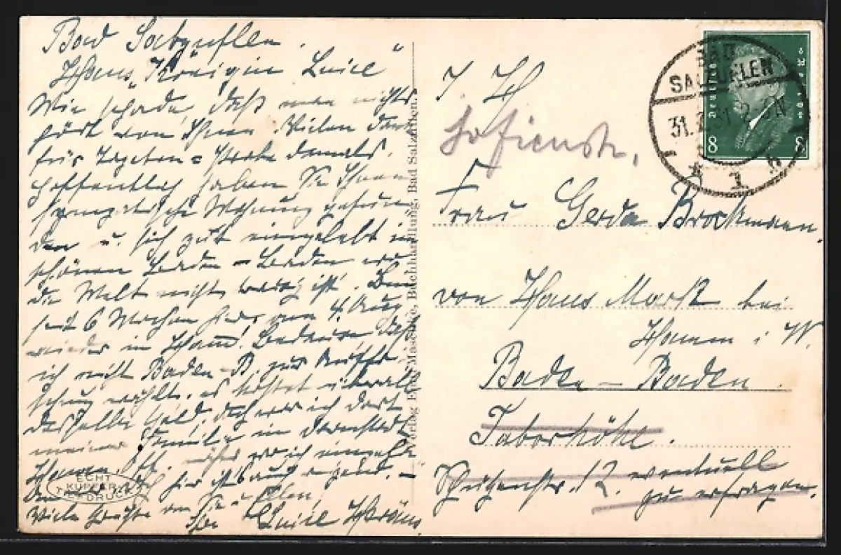 alte Ansichtskarte, gelaufen 1931, Eckknick unten re., guter Zustand