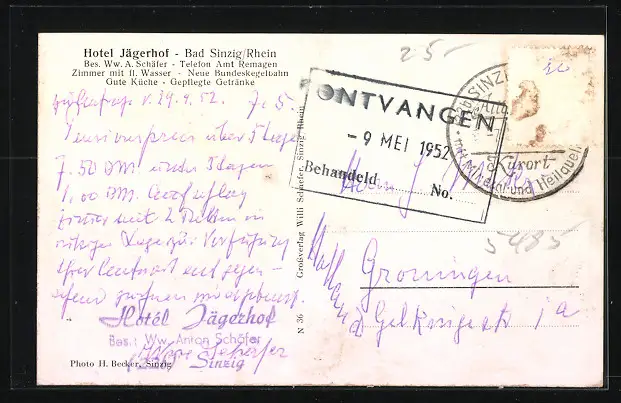 alte Ansichtskarte, gelaufen 1952, Briefmarke entfernt, guter Zustand