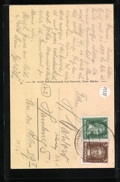 alte Ansichtskarte, gelaufen 1927, rückseitig Klebe- und Papierreste, guter Zustand