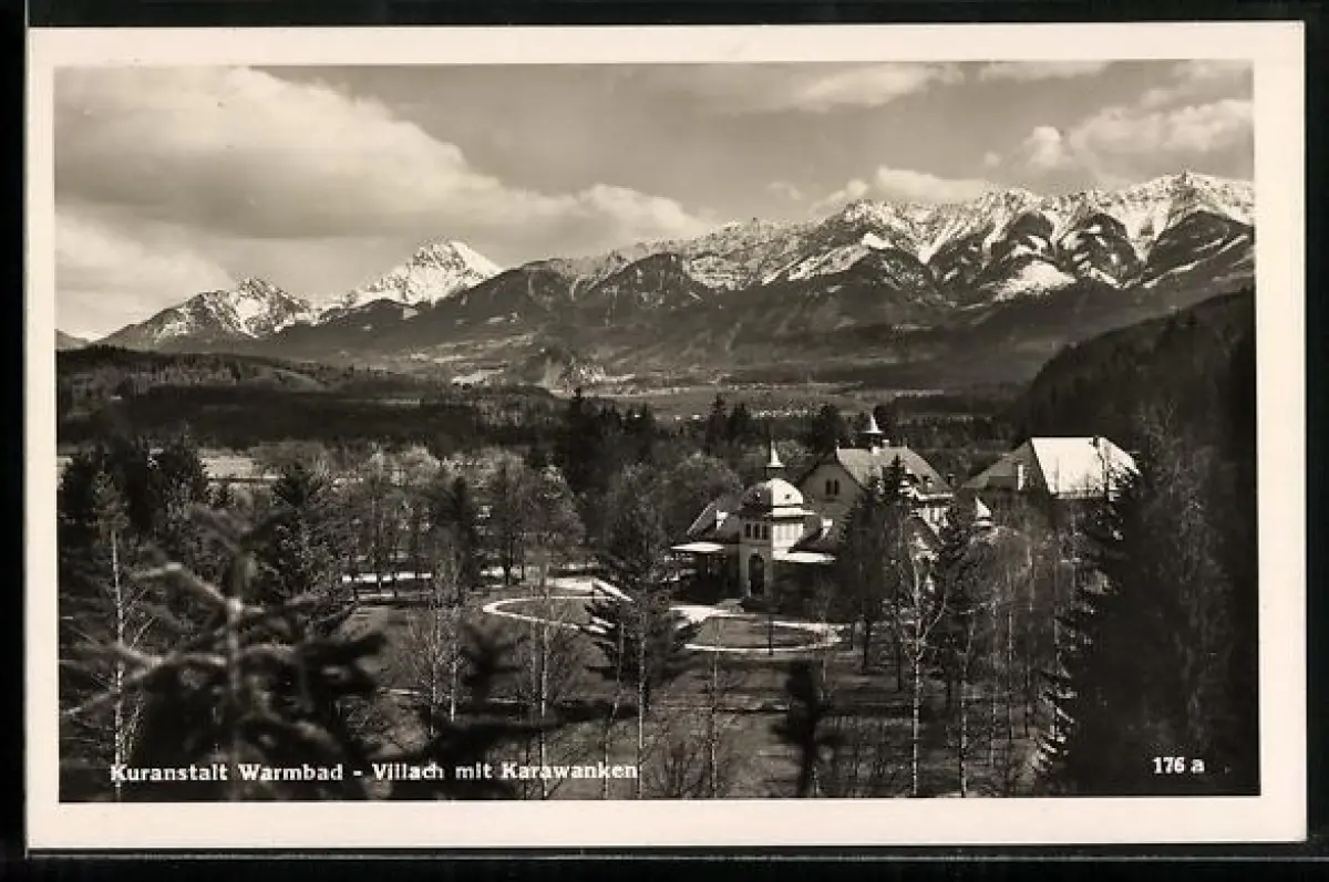 AK Bad Villach, Kuranstalt mit Karawanken