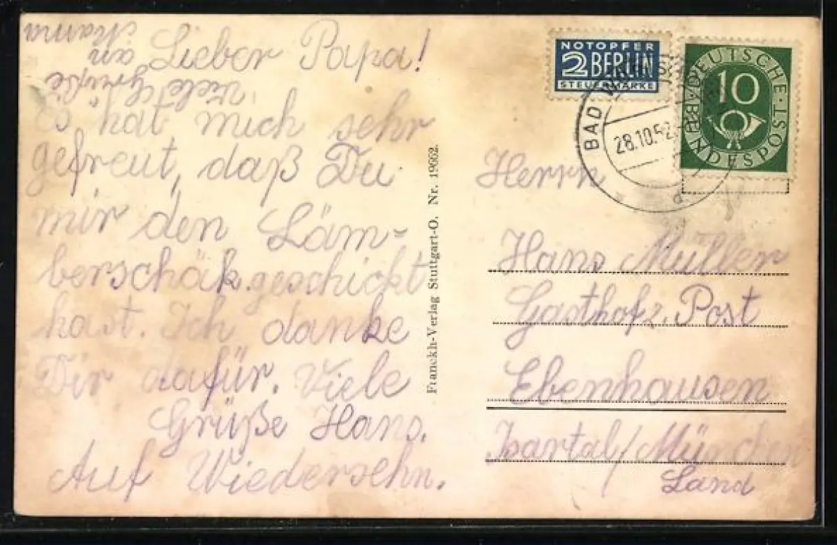 alte Ansichtskarte, gelaufen 1952, guter Zustand