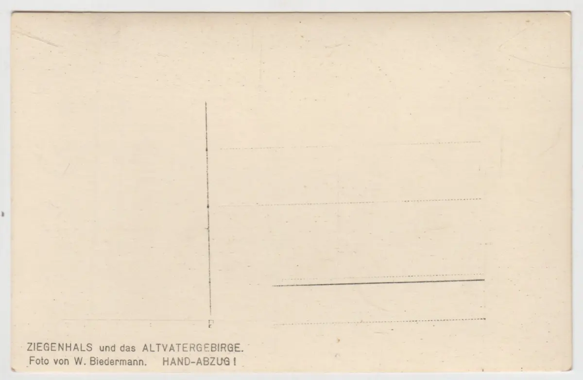 Bemerkungen: Unbeschriebene Postkarte mit leichten Gebrauchsspuren. Postkarte ohne Briefmarke und ohne Poststempel (ungelaufen). Bitte beachten Sie auch unsere Abbildungen. Foto von W. Biedermann. Handabzug! Fotokarte.