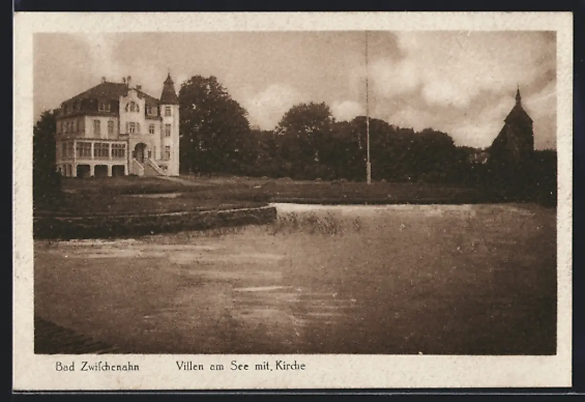 AK Bad Zwischenahn, Villen am See mit Kirche