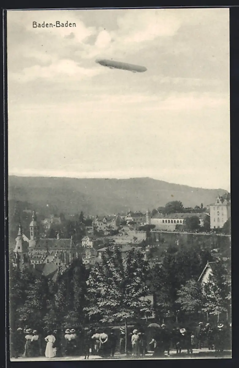 AK Baden-Baden, Zeppelin über der Stadt