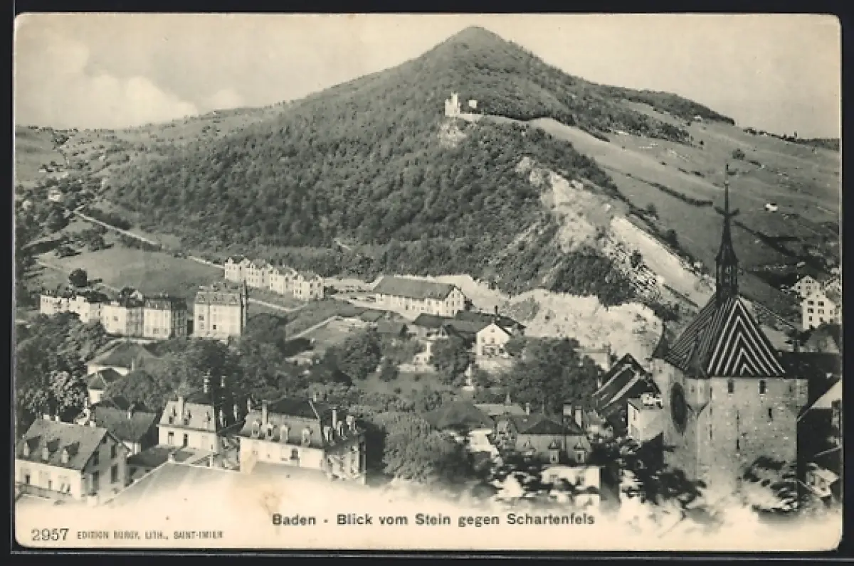 AK Baden, Ortsansicht vom Stein gegen Schartenfels