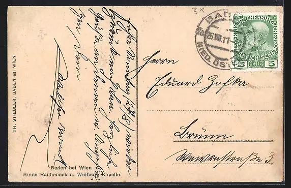 AK Baden, Ruine Rauheneck und Weilburg-Kapelle