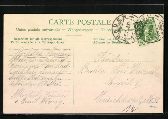 alte Ansichtskarte, gelaufen 1908, guter Zustand