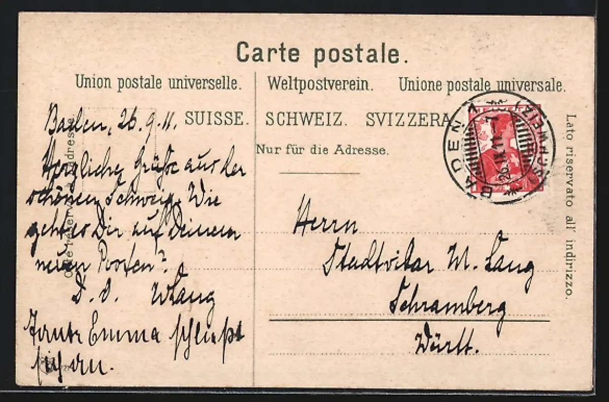 alte Ansichtskarte, gelaufen 1911, Eckknicke re. unten, Bugspur re. unten, guter Zustand