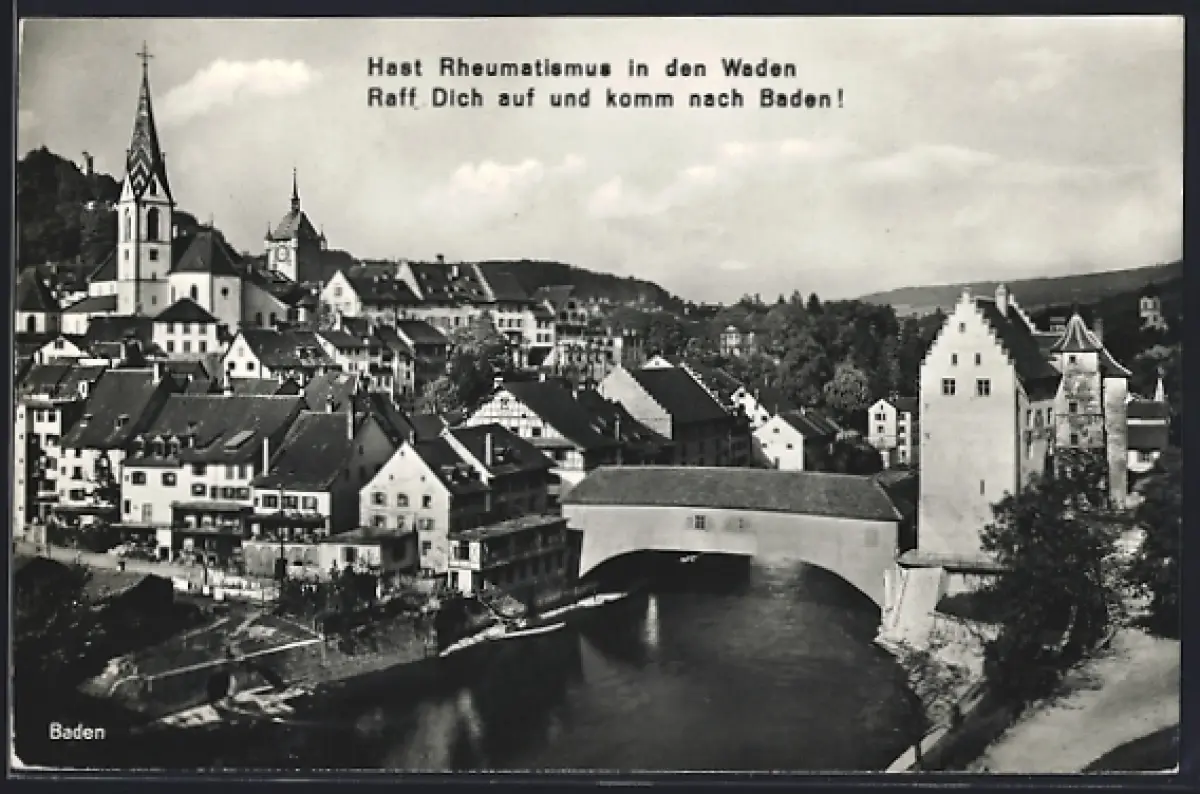 AK Baden, Teilansicht mit Kirche