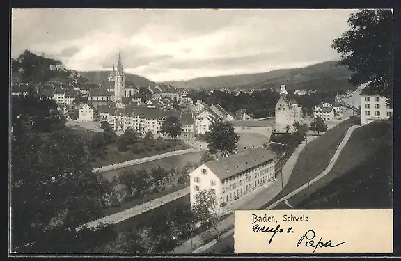 AK Baden, Teilansicht mit Kirche und Strassenpartien