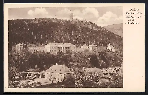 AK Baden b. Wien, Weilburg mit Ruine Rauheneck