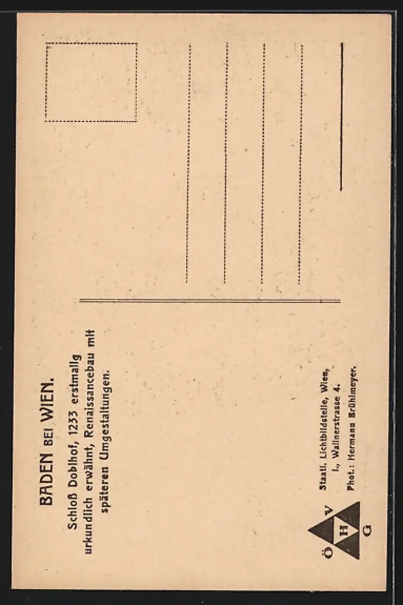 AK Baden bei Wien, Schloss Doblhof, 1233 erstmalig urkundlich erwähnt