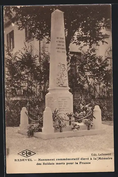 AK Badevel, Monument commémoratif élevé à la Mémoire des Soldats morts pour la France