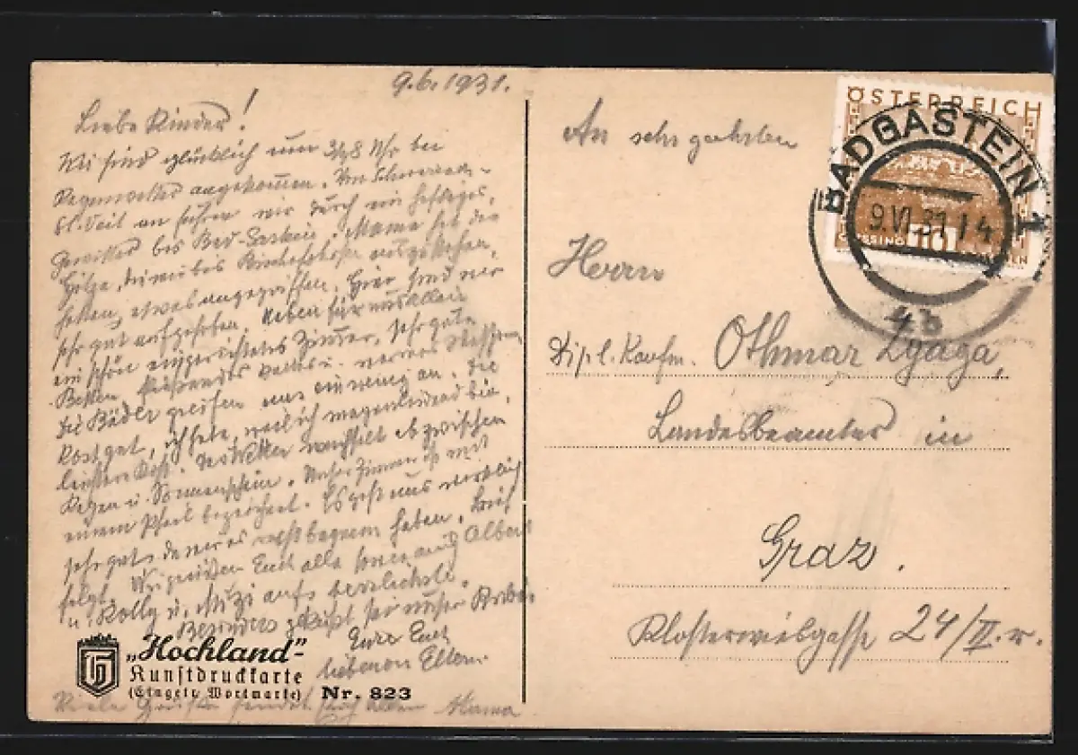 alte Ansichtskarte, gelaufen 1931, Eckknick oben re., guter Zustand