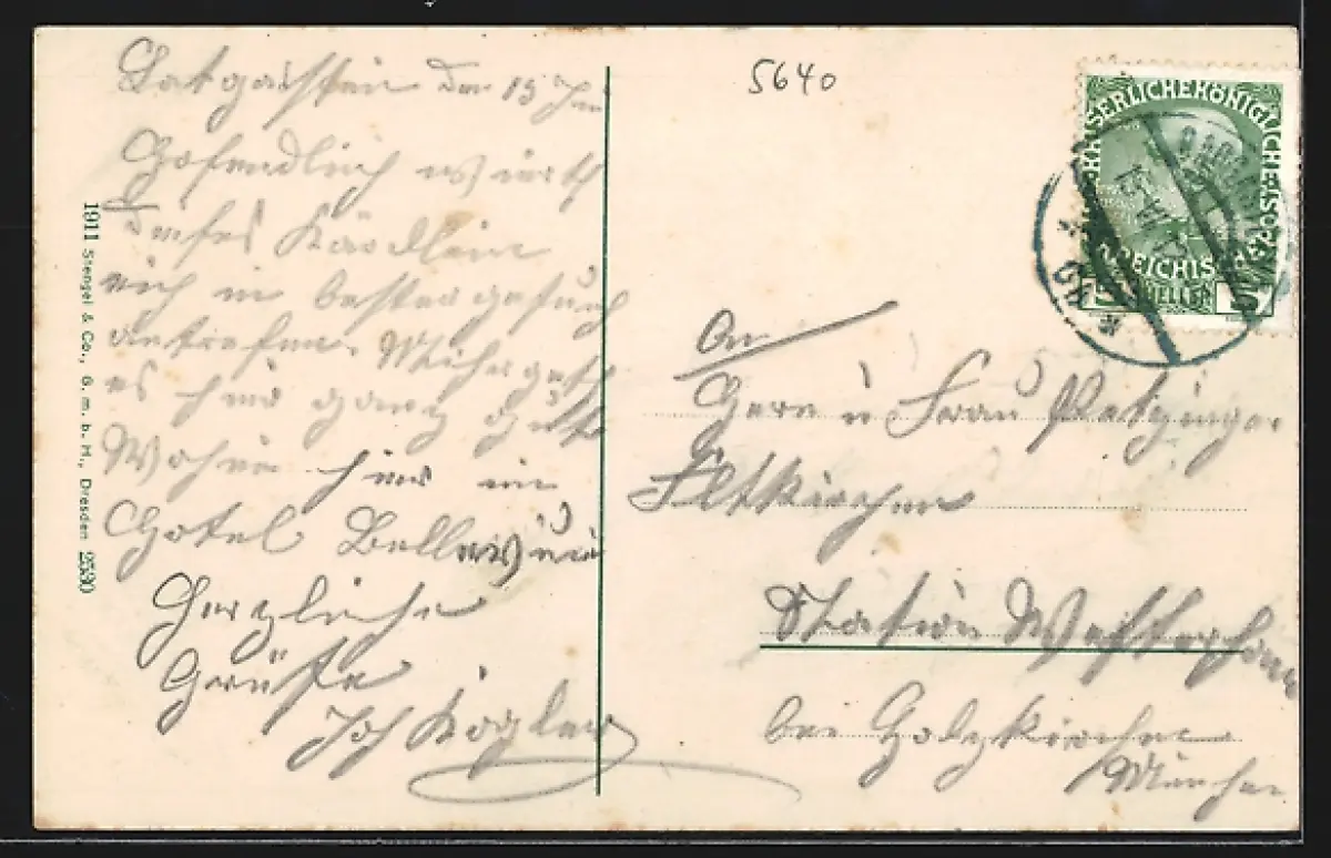alte Ansichtskarte, gelaufen 1912, Stempelspur, guter Zustand