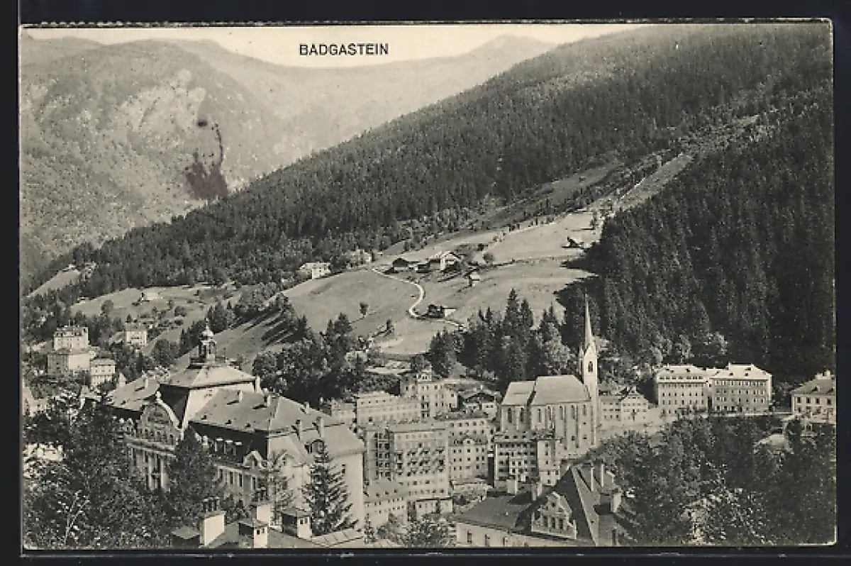AK Badgastein, Ortsansicht aus der Vogelschau