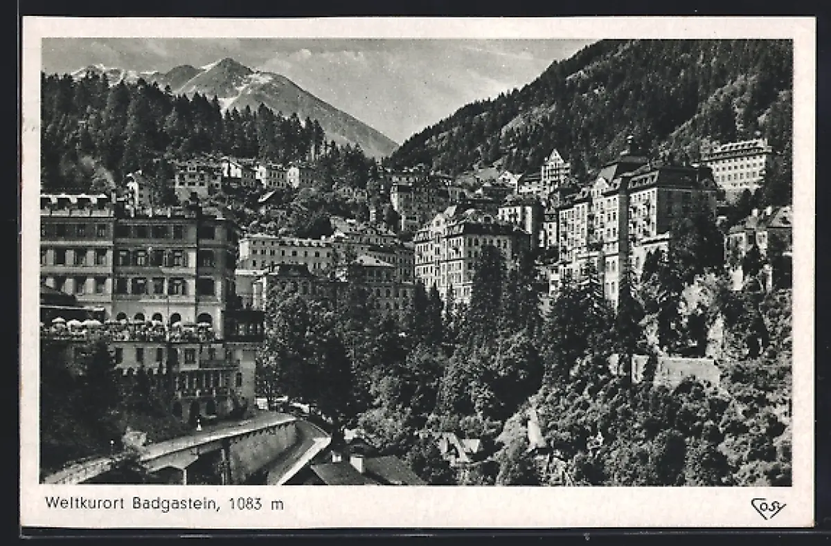 AK Badgastein an der Tauernbahn, Teilansicht mit Hotel