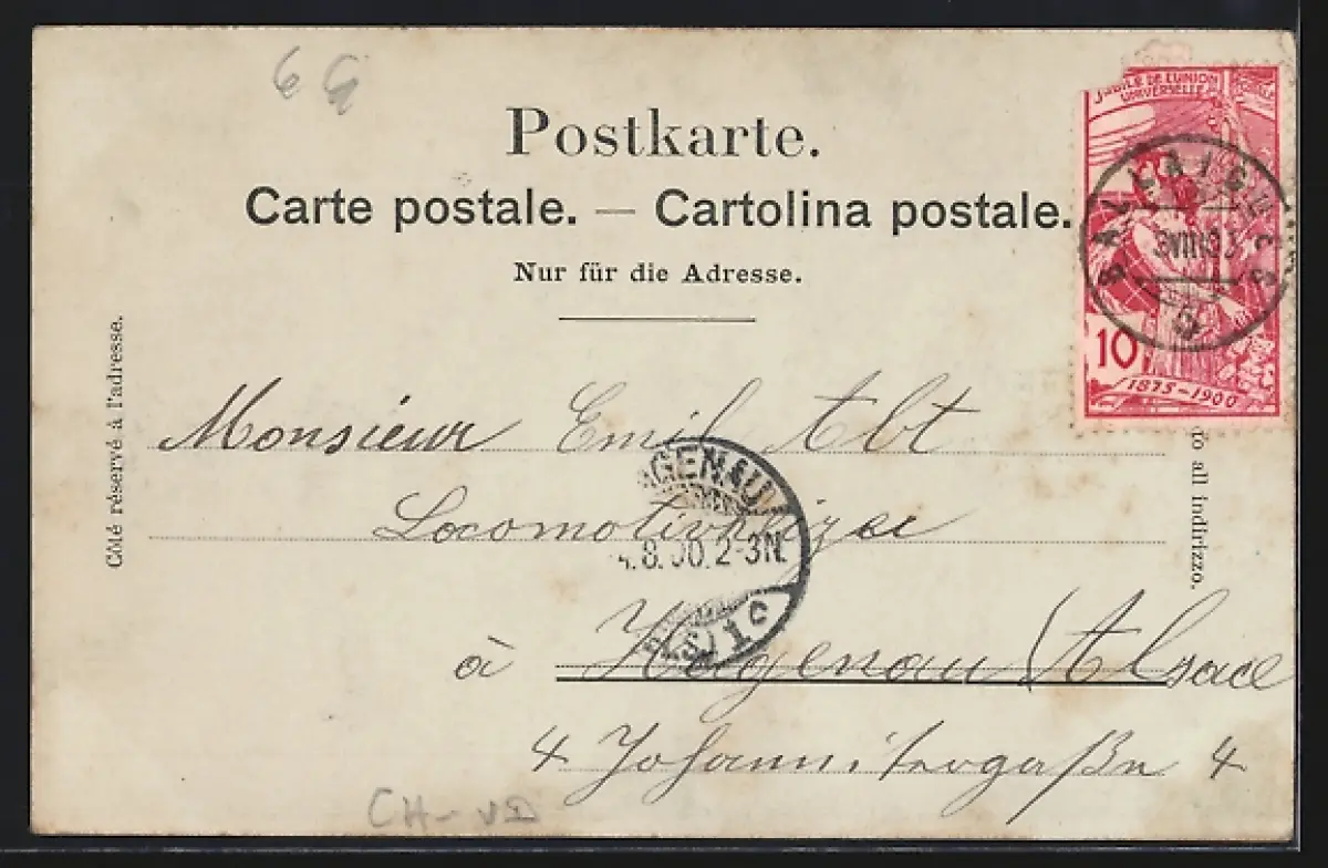 gelaufen 1900, Briefmarke entfernt, guter Zustand