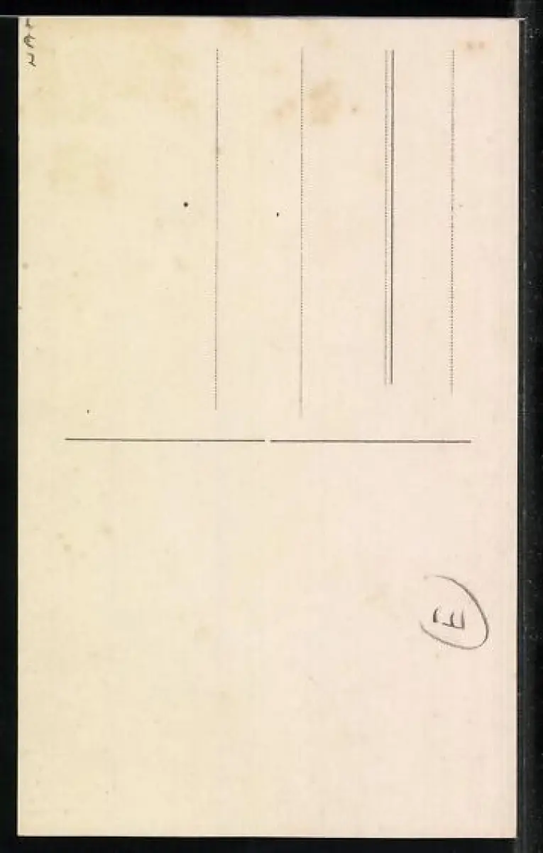 Personenbezogene Daten auf der Rückseite der Karte wurden durch blauen Textmarker unkenntlich gemacht. Die blauen Stellen sind auf die Vorderseite durchgeweicht und wirken sich negativ auf das Postkartenfoto aus