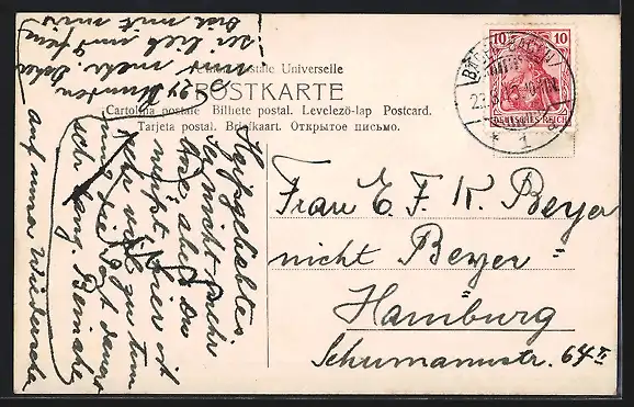 alte Ansichtskarte, gelaufen 1910, guter Zustand