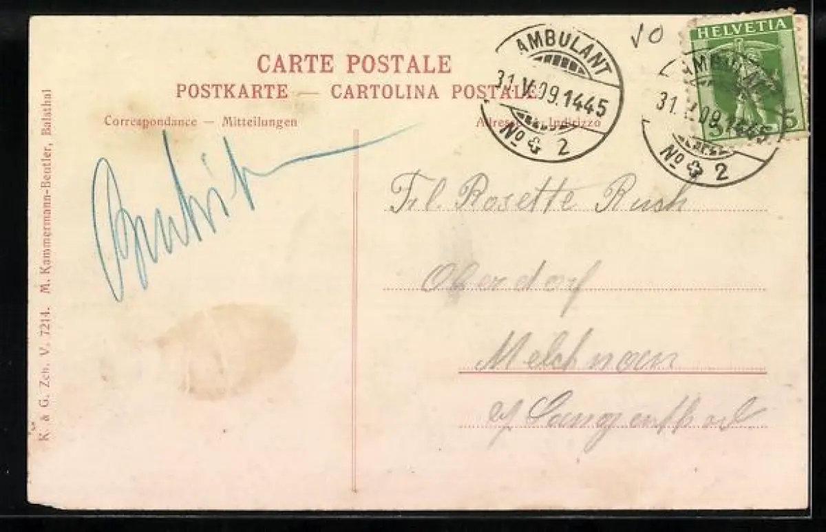 gelaufen 1909, min. Fehlstelle rechte untere Ecke, sonst guter Zustand