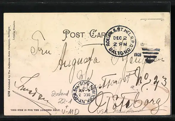 alte Ansichtskarte, gelaufen 1905, Eckknicke li. oben und re. unten, guter Zustand