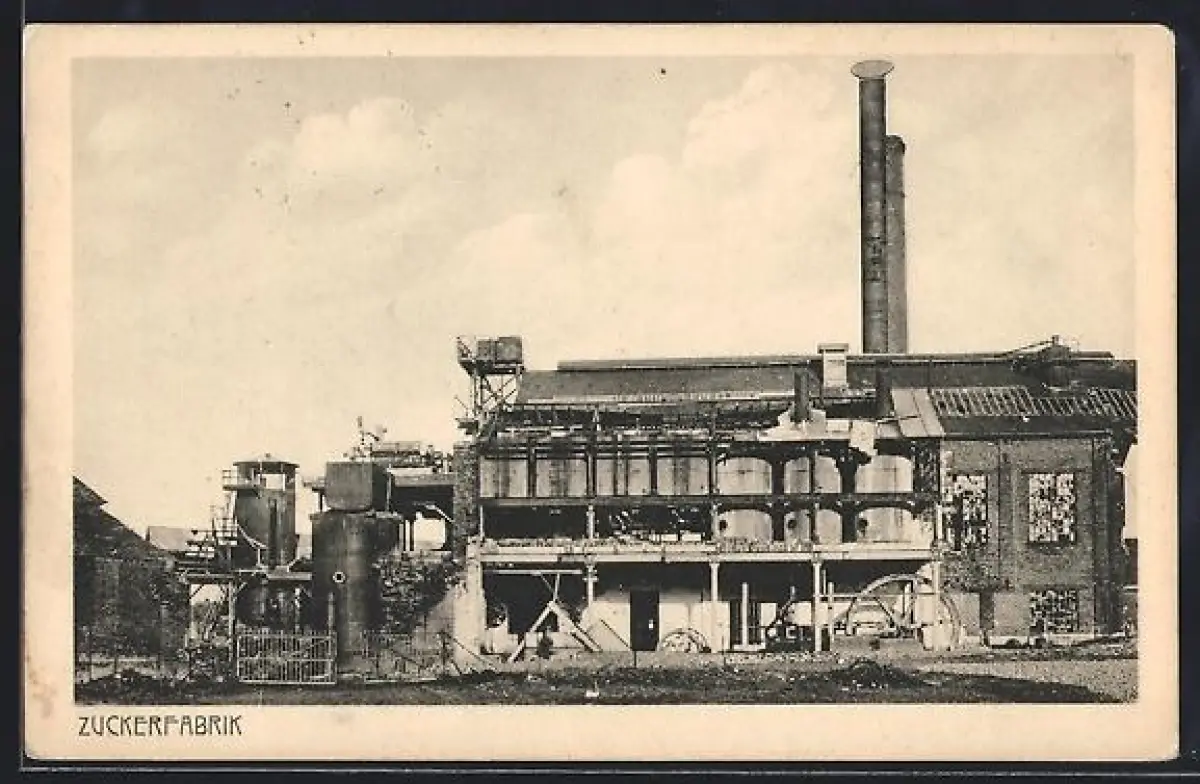 AK Bapaume, Vue de l`usine à sucre avec sa haute cheminée industrielle