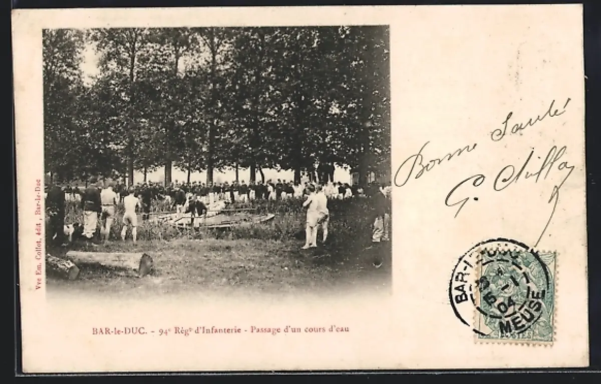 AK Bar-le-Duc, 94e Régiment d`Infanterie, Passage d`un cours d`eau