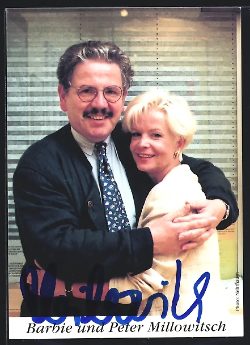 AK Barbie und Peter Millowitsch Arm in Arm, Autograph