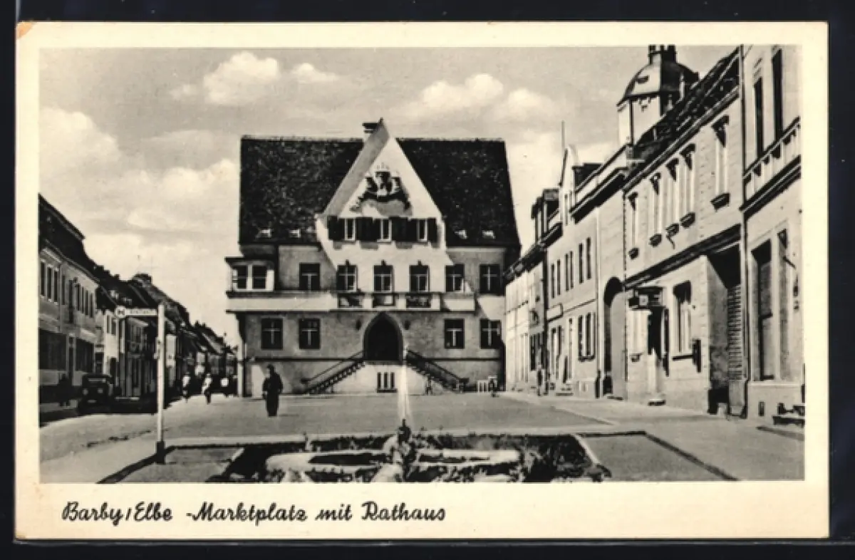 AK Barby /Elbe, Marktplatz mit Rathaus