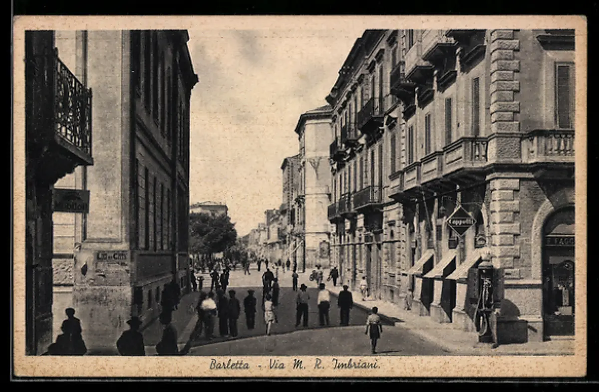 AK Barletta, Via M. R. Imbriani con passanti e edifici storici