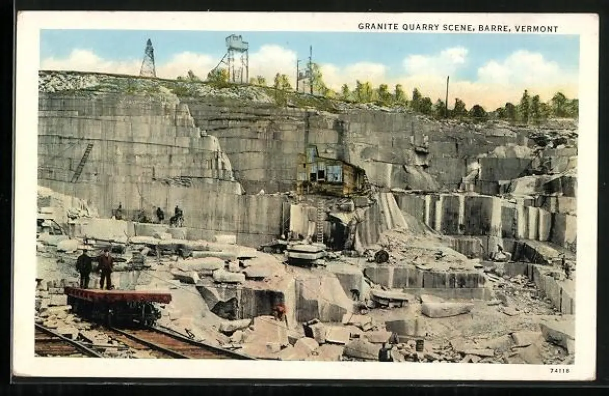 AK Barre, VT, Granite Quarry Scene, Granitbruch mit Wagen