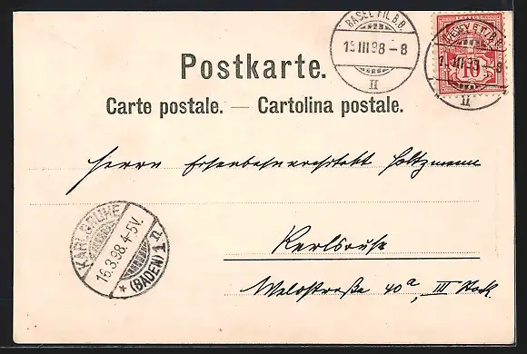 alte Ansichtskarte, gelaufen 1898, guter Zustand