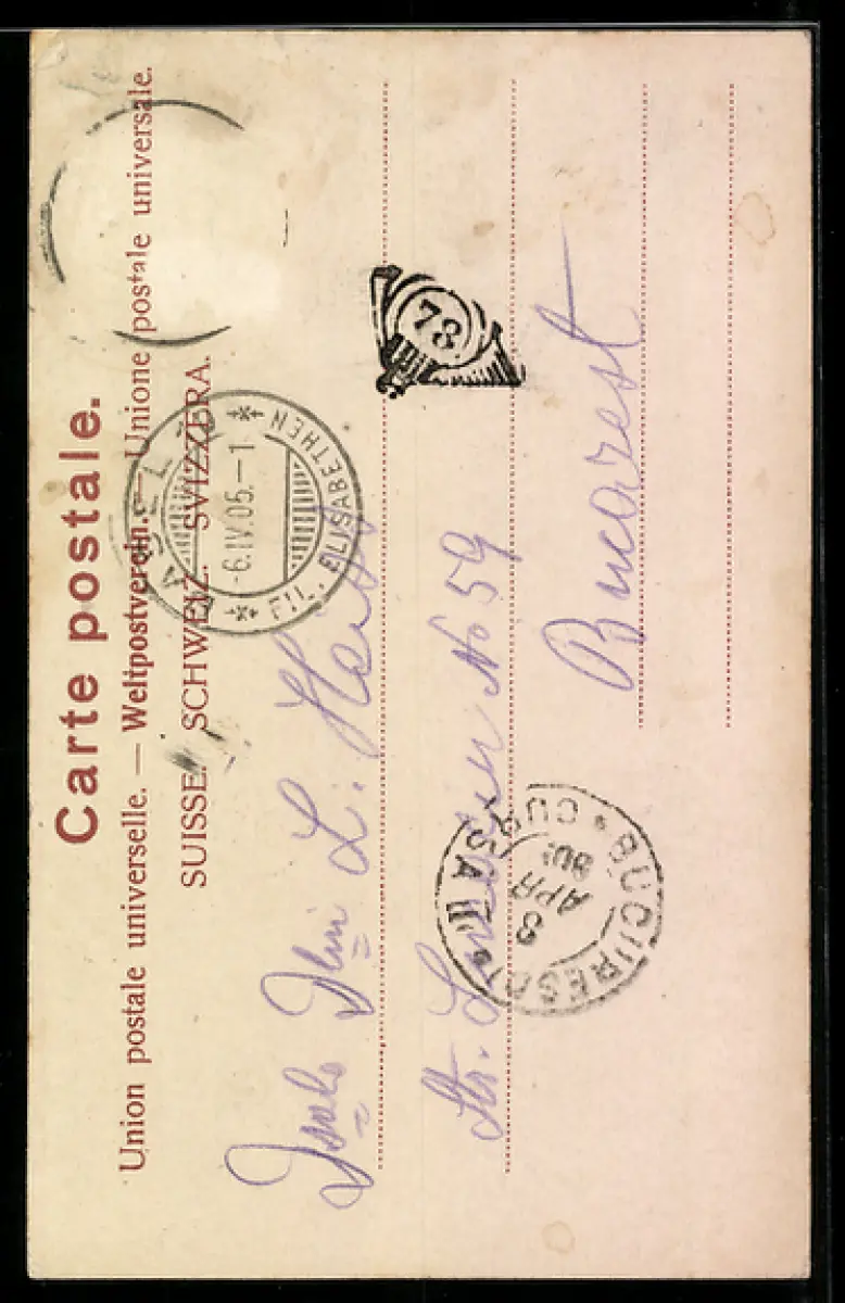 alte Ansichtskarte, gelaufen 1905, Briefmarke entfernt, rückseitig Oberflächenschaden, guter Zustand