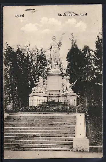 AK Basel, Blick auf das St. Jakob-Denkmal