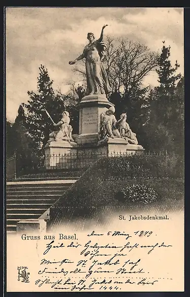 AK Basel, Blick auf das St. Jakobsdenkmal