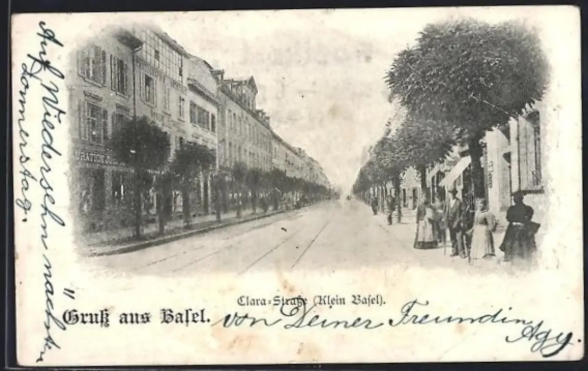 AK Basel, Clara-Strasse mit Restaurant