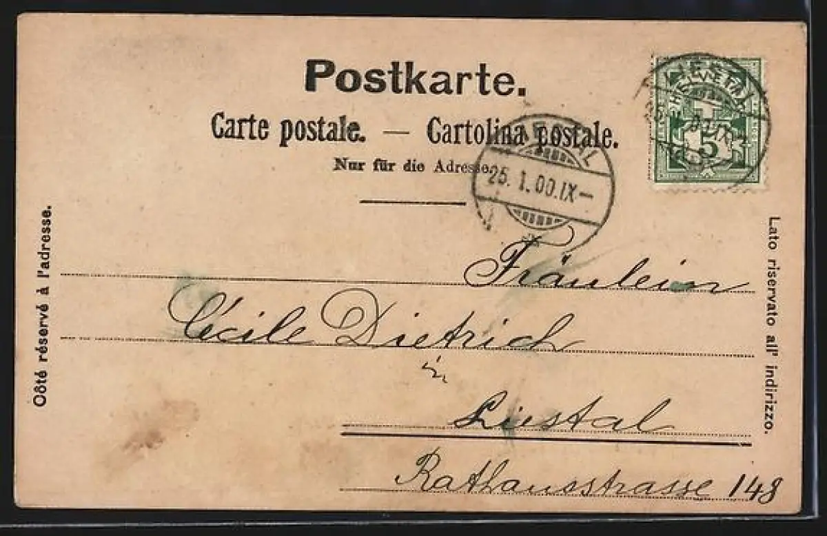 alte Ansichtskarte, gelaufen 1900, Bugspur re. oben, guter Zustand