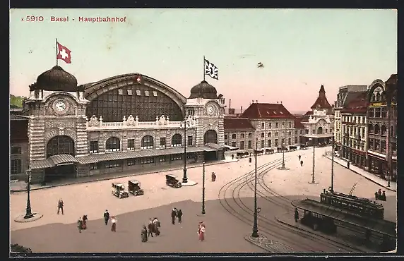 AK Basel, Hauptbahnhof, Strassenbahn