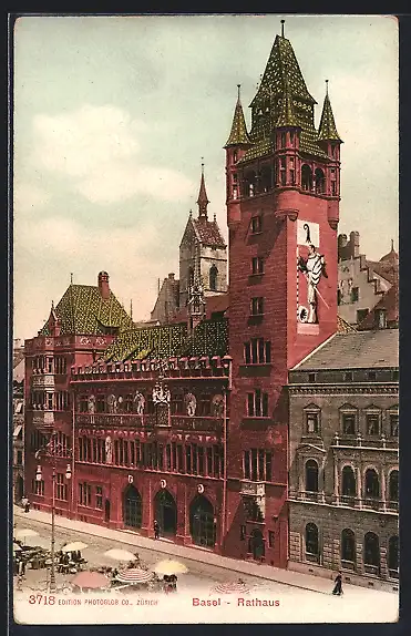 AK Basel, Markt vor dem Rathaus