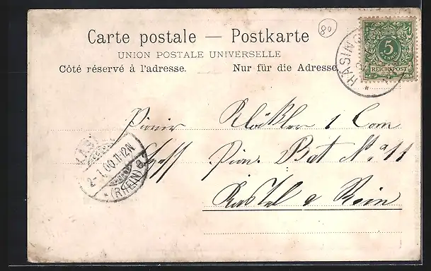 alte Ansichtskarte, gelaufen 1900, Einriss re. oben, guter Zustand