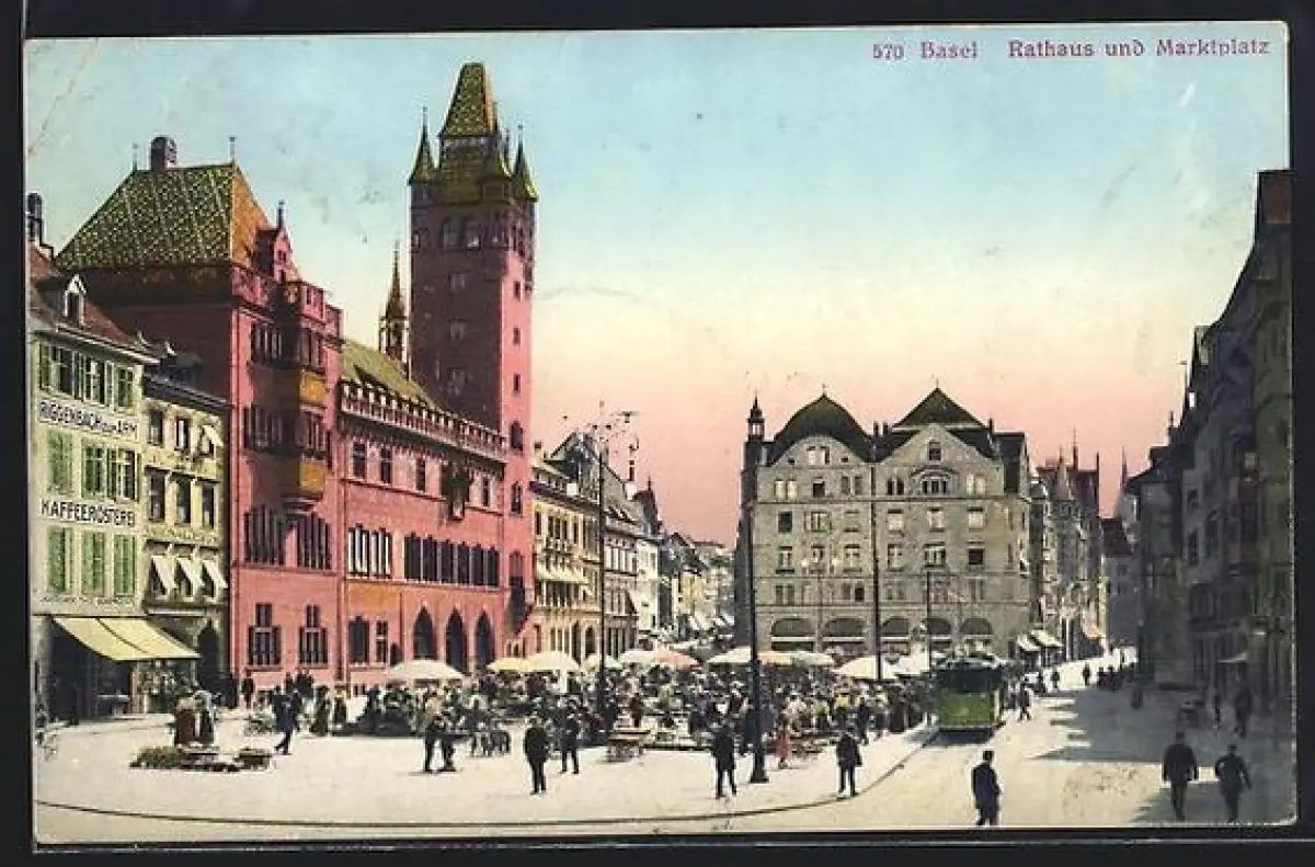 AK Basel, Rathaus und Marktplatz