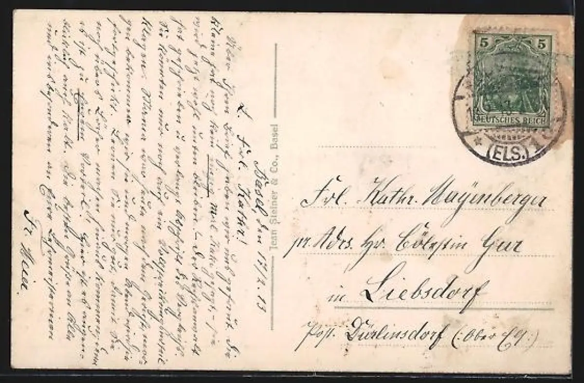 gelaufen 1913, Eckknicke li. oben, guter Zustand