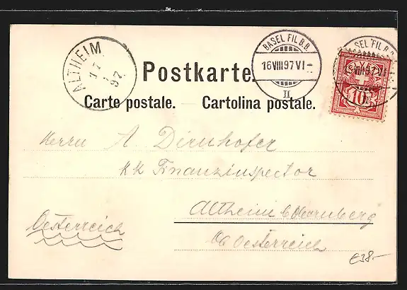 alte Ansichtskarte, gelaufen 1897, guter Zustand
