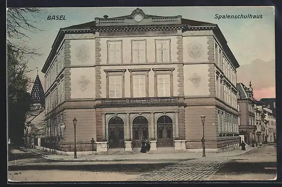 AK Basel, Spalenschulhaus, Eckfassade mit Eingang