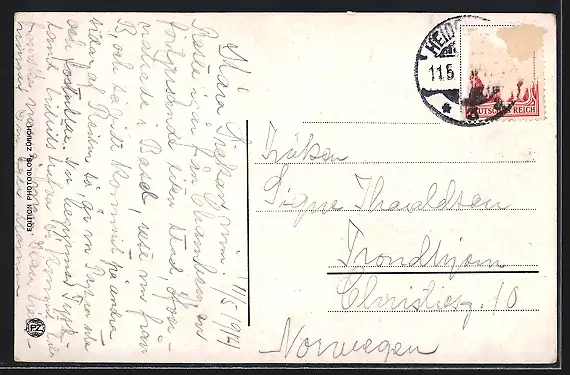 alte Ansichtskarte, gelaufen 1914, Briefmarke entfernt, rückseitig Oberflächenschaden, Eckknick li. oben, Abriebspur li. oben, guter Zustand