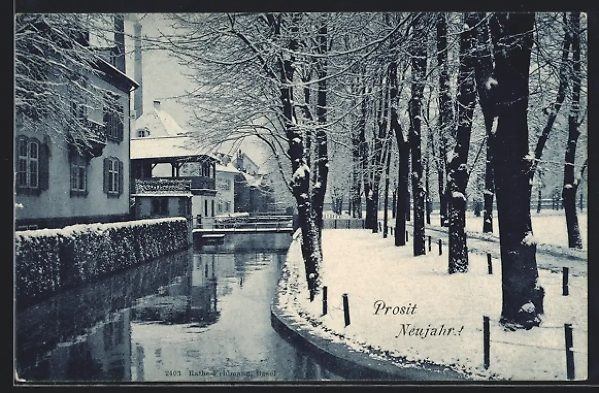 AK Basel, Spazierweg am Kanal