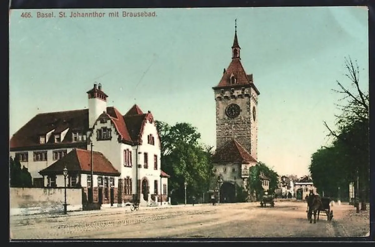 AK Basel, St. Johannthor mit Brausebad